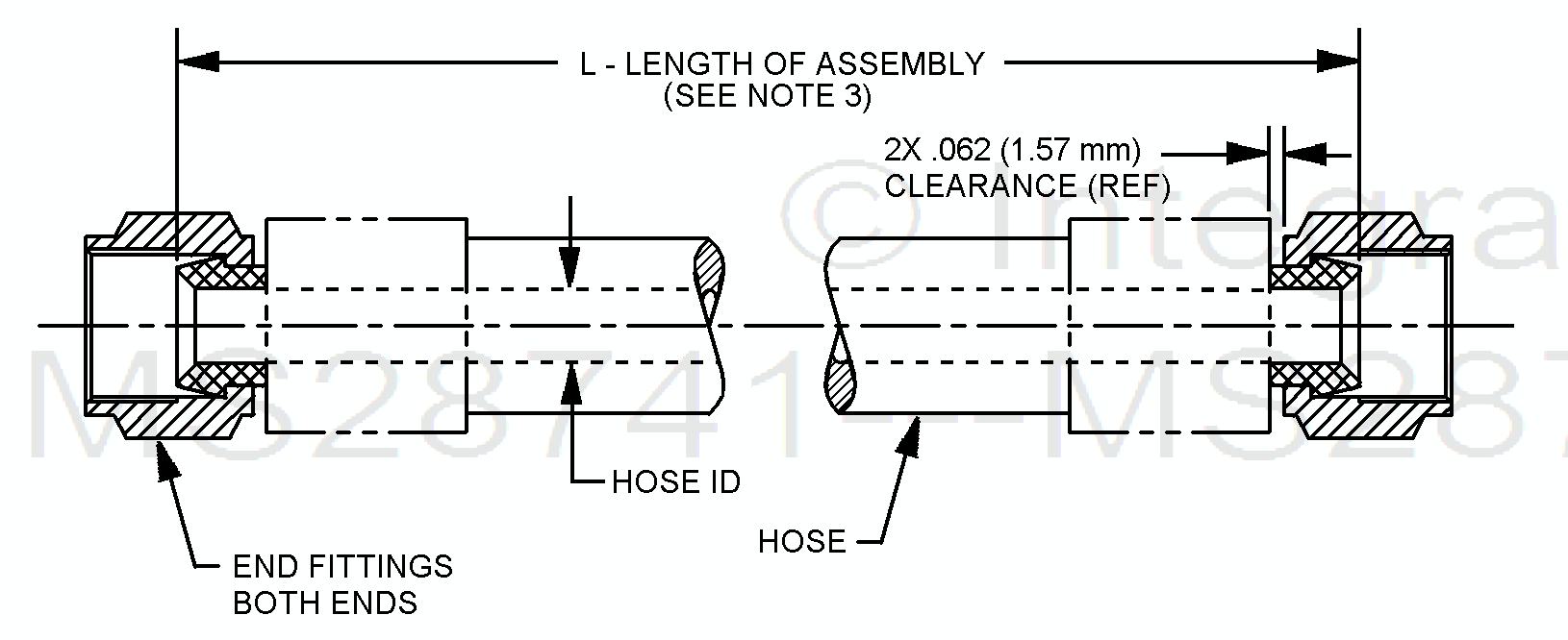 3. Hose assembly lengths (L) shall be as specified with the following tolerances:
