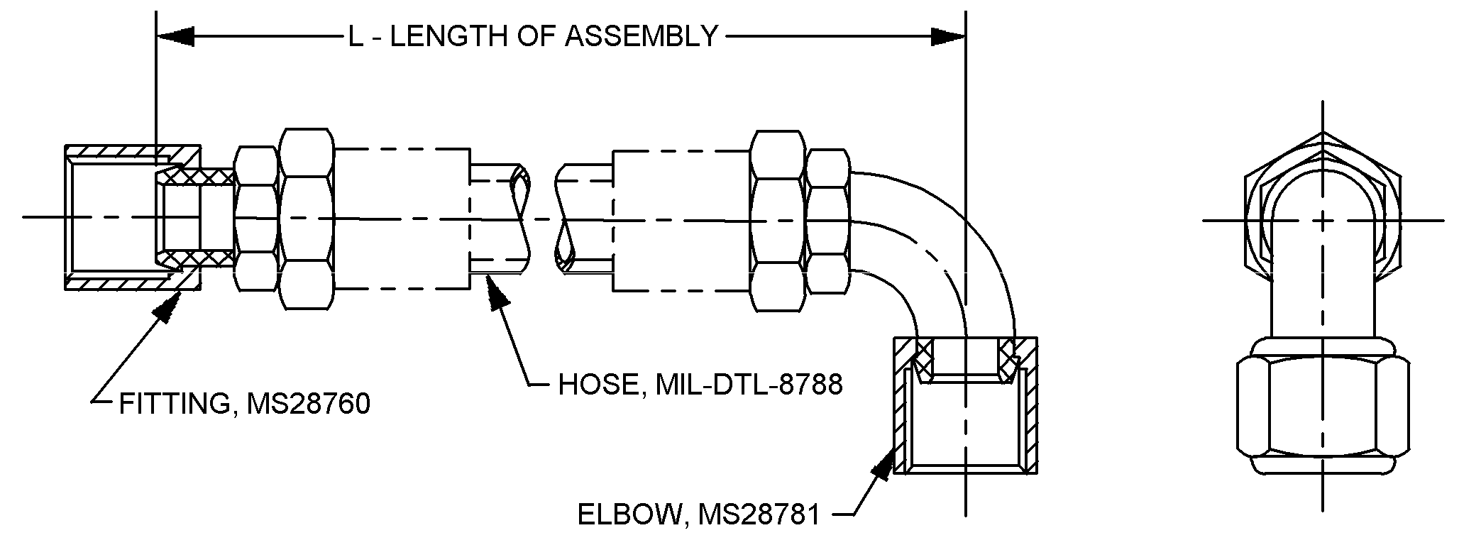 FIGURE 1. Hose assembly, flared tube dimensions and configuration.